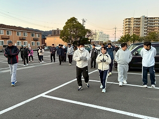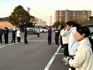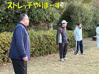 この日は特に寒かったので、しっかりストレッチをしてケガを予防します。