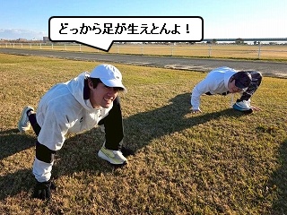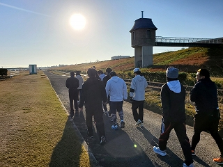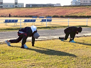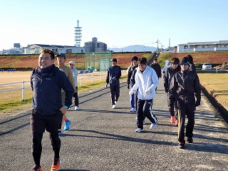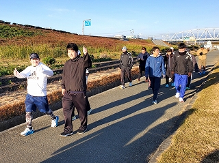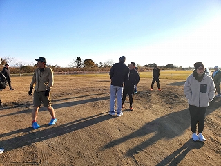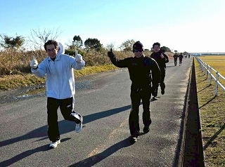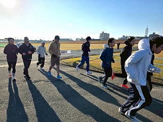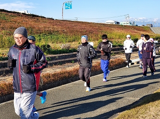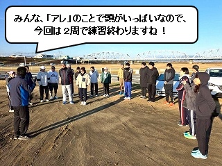 いつもはコースを3周走るのですが、毎年みんな年末の練習では、3周目なんか気持ちが違うほうにいっちゃてます(笑) |