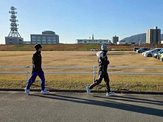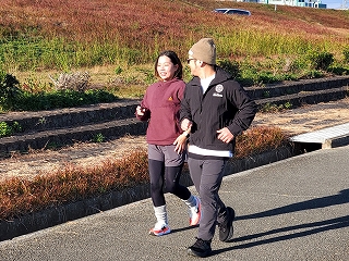 2周目、約1キロを走ったところで「しほ先生のランニング講座」が始まります! しほ先生、よろしくお願いいたします! |