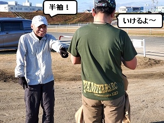 やまわき師匠、今回もわざわざ駆けつけてくれました! いつもありがとうございます! Wは「伸線ウォーキング」でかいた汗で「汗冷え」状態! |