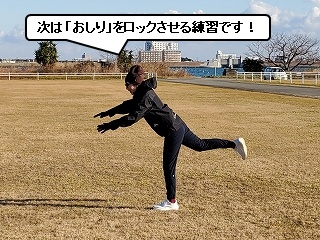 また、「うまく乗り込みできているのか?」を確かめるために、人を驚かせる動きをしてみます。 さらには、それを連続で行うことでランニングのフォームになっていきます。 むむ、勉強になります! |