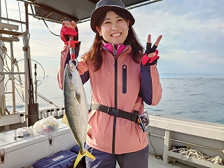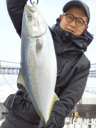 にしさんは、ミサイルのような「ブリ」をGET! 石ちゃんもヒラメを追加! |