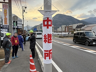 スーパーランモンが走るのは、第13区。 たすきをつないで13区が終わると、14区は別の場所からスタートします。 ってことで、コージーリーダーとWは、ゴール地点でスーパーランモンおがささんを待ちます。 |