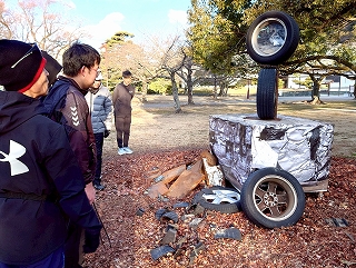 すると・・・ 公園内に「変なモノ」が(笑) なんだこれ?? 徳島中央公園では、時々、芸術家の方が創った芸術作品が置かれているんです。 |