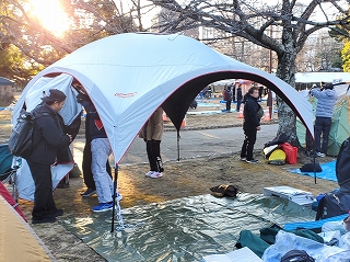 2月上旬の日曜日、この日、徳島中央公園において、 朝7時30分、みんなで「ベースキャンプ」を建てていきます。 |