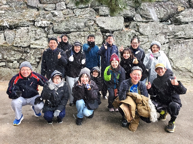 まだまだ雪は強まり、もはや雪国みたいですが、集合写真です!(笑)