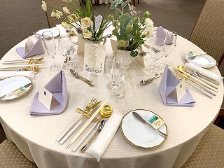 会場に入ると、こんな感じにテーブルセッティングしてくださっています! マジですごい! |