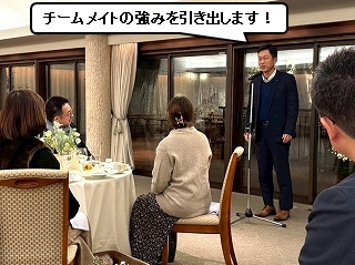 そしてラスボス、西部長! 「今日、ベンチマークで見ていただく朝礼のファシリテーションをなみちゃんがしました。なみちゃんがちゃんとファシリテーションできるように、チーム関係なく、色んな人がなみちゃんに関り、アドバイスしました。 |