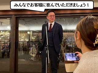 まずは社長に乾杯のご発声をいただきます。 社長からは、 と、ごあいさついただきました。 |
