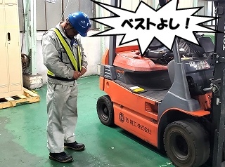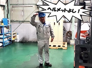 かずおちゃん、「いつものように」フォークリフトの周囲を安全確認してくれます。 |