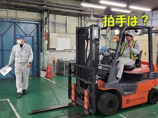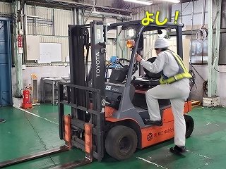先日、品証、営業、経管のみんなで「フォークリフトについての安全勉強会」を行いましたー! |