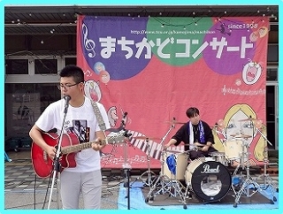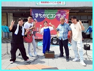 昨年5月、鴨島駅前の「まちかどコンサート」でデビューした「BLUE CAPS」! |