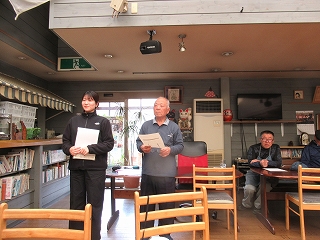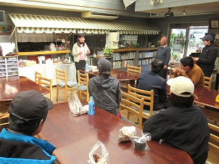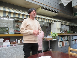 あっという間にお開きの時間となりました。 最後にいしちゃんがこの日の感想をしゃべってくれました。 お土産にしいたけをいただいたみたい! |