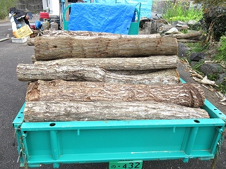 大きな原木で栽培しているのは、エリンギだそうです。 |