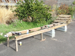・ドリルで原木に穴をあける。 |