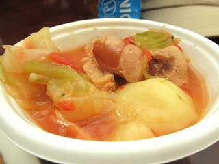 お昼にはランチをいただけたそうです。 ピザとポトフ(かな?)。 間違いない!おいしいやつです! |