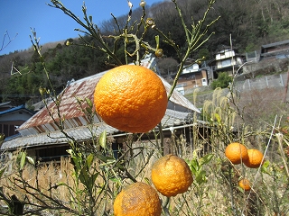 飾り用なので、「え?」というような「炭」がたくさん! みかん! これは柿かな(↓)。 |