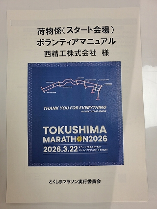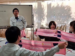 このブログが配信されるのは「とくしまマラソン2026」の翌日。 この日、「とくしまマラソン」を数日後に控え、「とくしまマラソン」を支えてくれるボランティア打ち合わせが本社で行われました。 ボランティアスタッフの皆さんには、記念のボランティア用タオルが贈られるそうです。 |