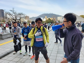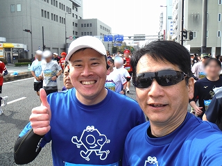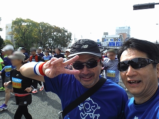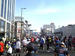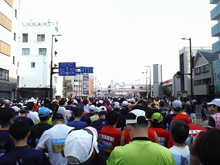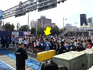 ←ゼッケンのアルファベットごとに集合していきます。 さあ、いよいよスタートです! ↓の写真、最前列の写真なのですが、最前列に我らがスーパーランモンおがささんがいます! |