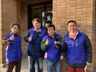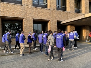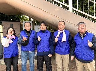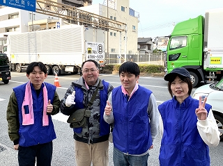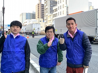 早朝、県庁前に集合するボランティアスタッフのみんな。
