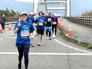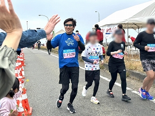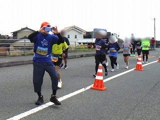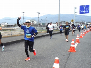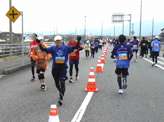 西条大橋南詰から100メートルくらい進んだところで、ナベさんがランナーたちの勇姿をがっつり撮影してくれました! |