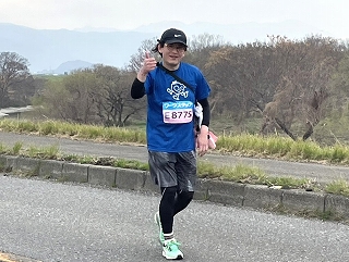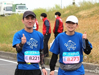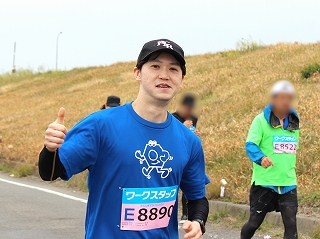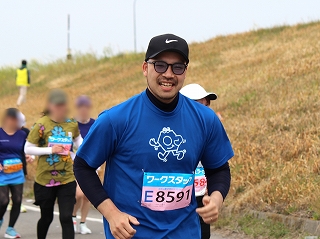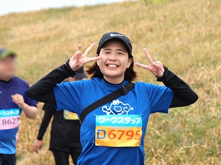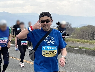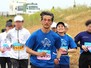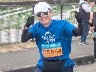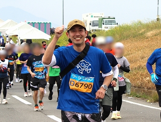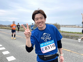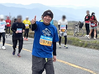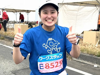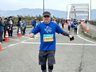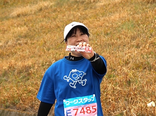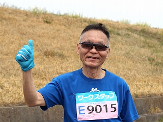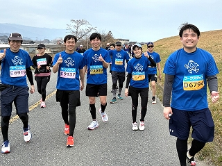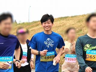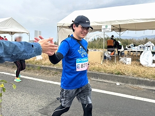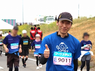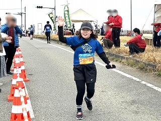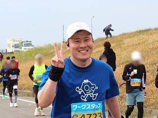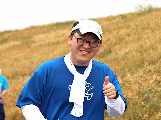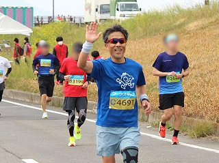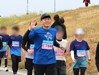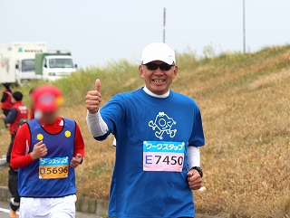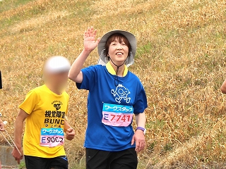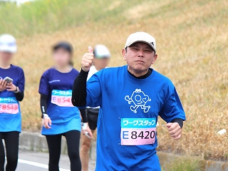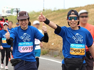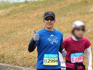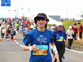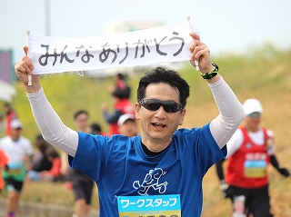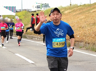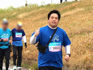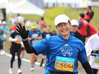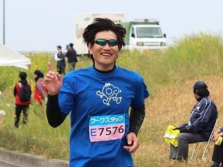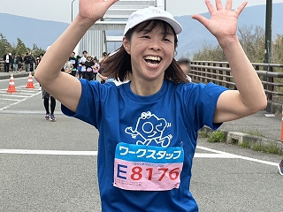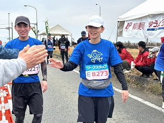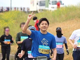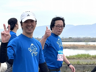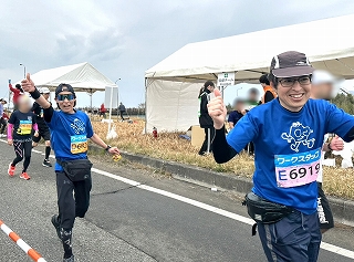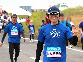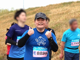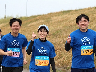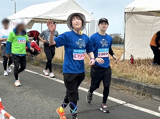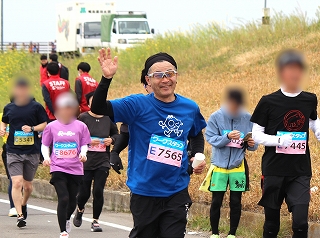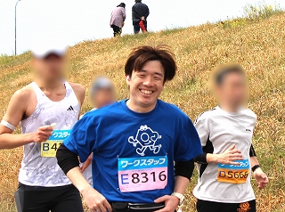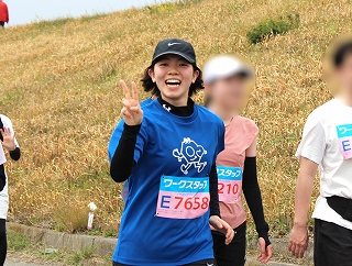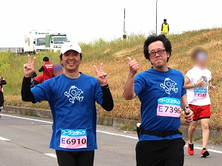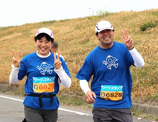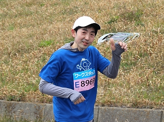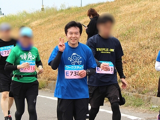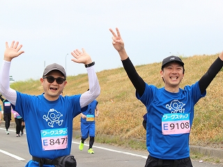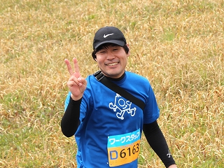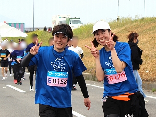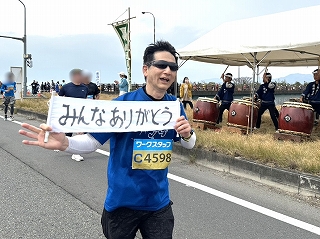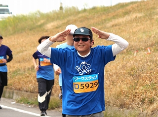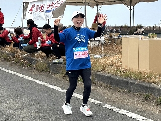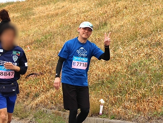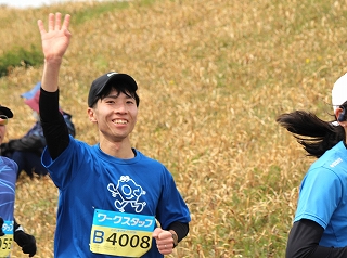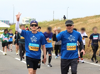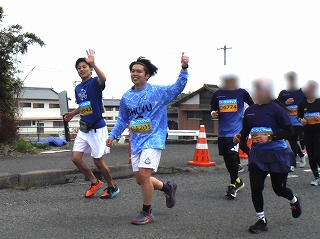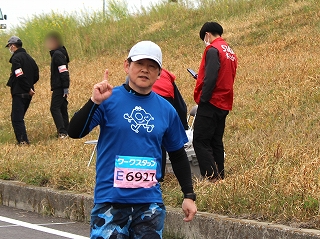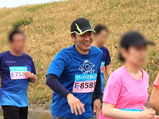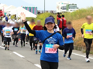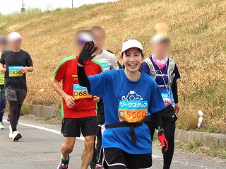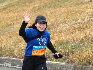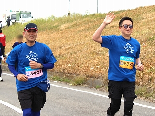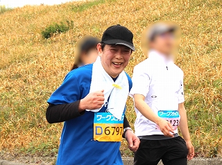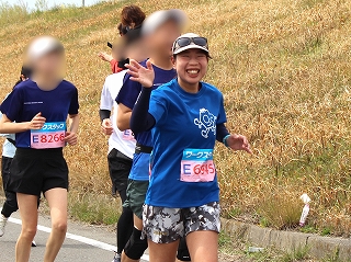 苦しい顔で走っていたWも顔がほころびます。 他のランナーたちもご覧の笑顔 (⌒▽⌒)~♪ |