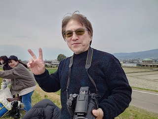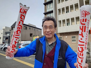 六条大橋の手前では、くすのきさんがオリックスバファローズに身を包んで応援してくれました! 六条大橋の下では、たにもとさんがしめじくんと一緒に応援してくれました! ありがとうございます! |