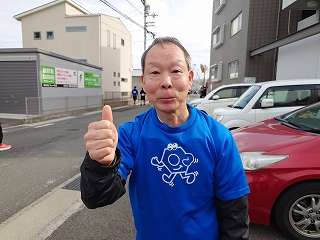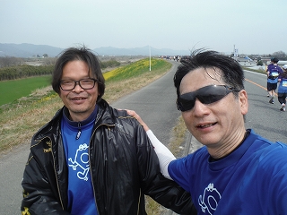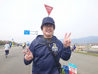 18キロ地点、高瀬橋手前でちょいワルおやじかと思ったら、キングB大先輩を発見! |