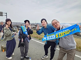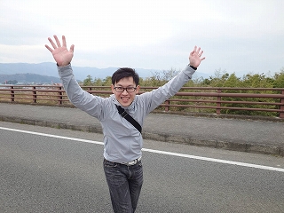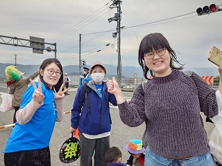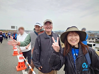 ←西条大橋の手前では、しのみやさんが応援してくれていました! ↓西条大橋の上では、ばんどうさんとまさきさんが応援してくれていました! ありがとうございます! |