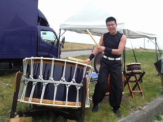 六条大橋の南詰でドンドコ太鼓を打ち鳴らしてくれていたのは、たけだくん! |