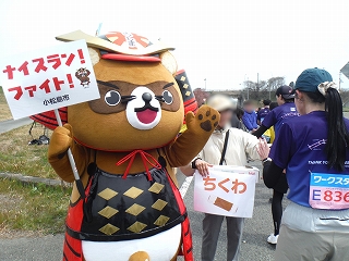 残り1キロの地点では、毎年おりのさんが待ってくれています! |