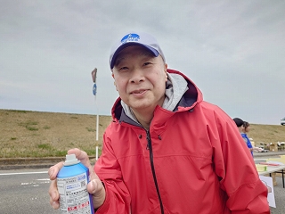 チゴ祭りのその先で、あいざわさんがお子さんたちと一緒に応援してくれていました! さらには、せいにゃんが冷却スプレーで癒してくれます。 いせきさん、場所を移動してココでも応援してくれていました! |