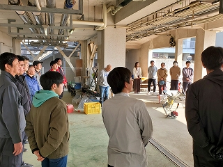 3月末、この日、製品管理係のお誘いで集まった有志たちが、国府支援学校様に集いました! 製品管理では毎年、国府支援学校様での環境整備をサポートしており、今回もサポートに出陣しました。 お休みにも関わらず、校長先生が来てくださり、ごあいさつくださいました。 |
