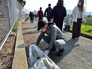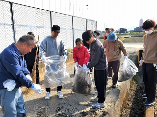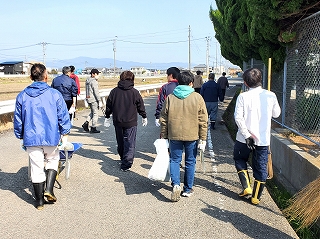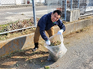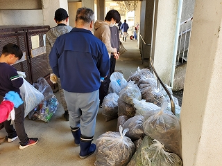 今回はけっこうな人数が集まっていたので、すごい勢いで側溝がキレイになっていきます。 枯草が詰まったゴミ袋がどんどん量産されていきます。 |