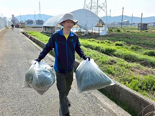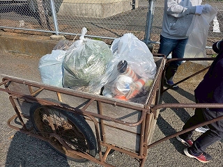 回収したゴミや枯草は、リアカーに載せていきます。 |