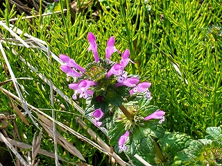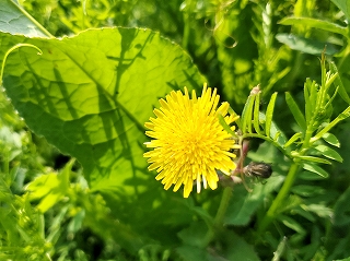側溝横の畑に目を移すと、春ならではの花がキレイに咲いています。 |