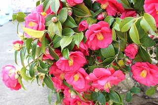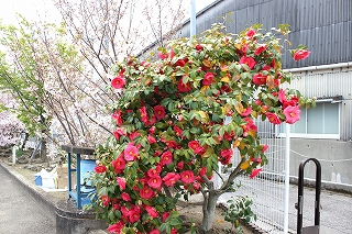第二駐車場の入り口にはツバキの花も満開を迎えています。 |