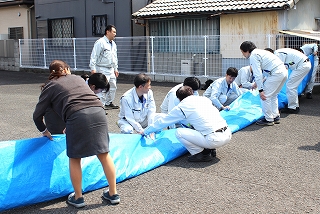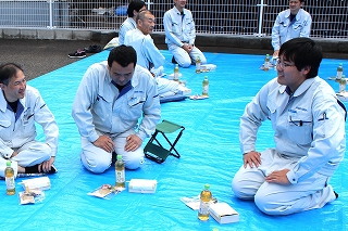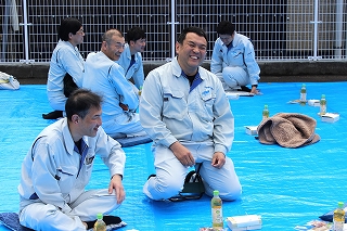 第二駐車場にブルーシートを敷いてくれ、4つの円陣で座っていきます。 |