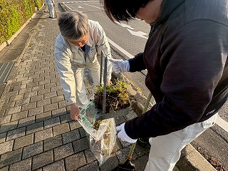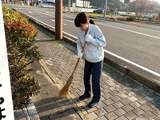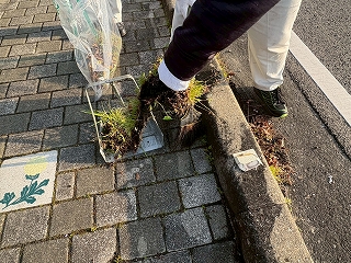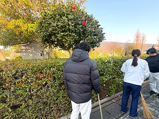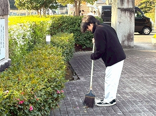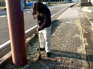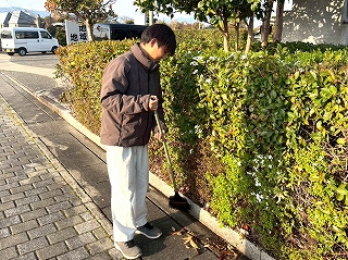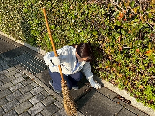 ってことで、歩道に落ちている落ち葉を掃き集めていく面々。