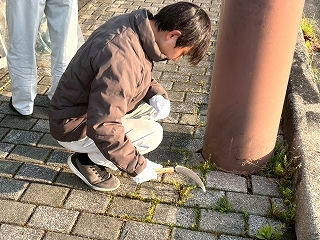 工作係の「チョケ・ツートップ」のひとり、れーとがマジメに草むしりしてる!